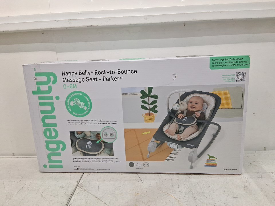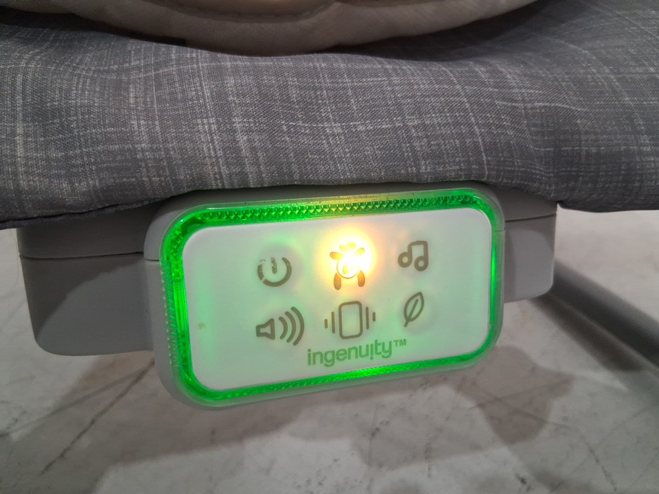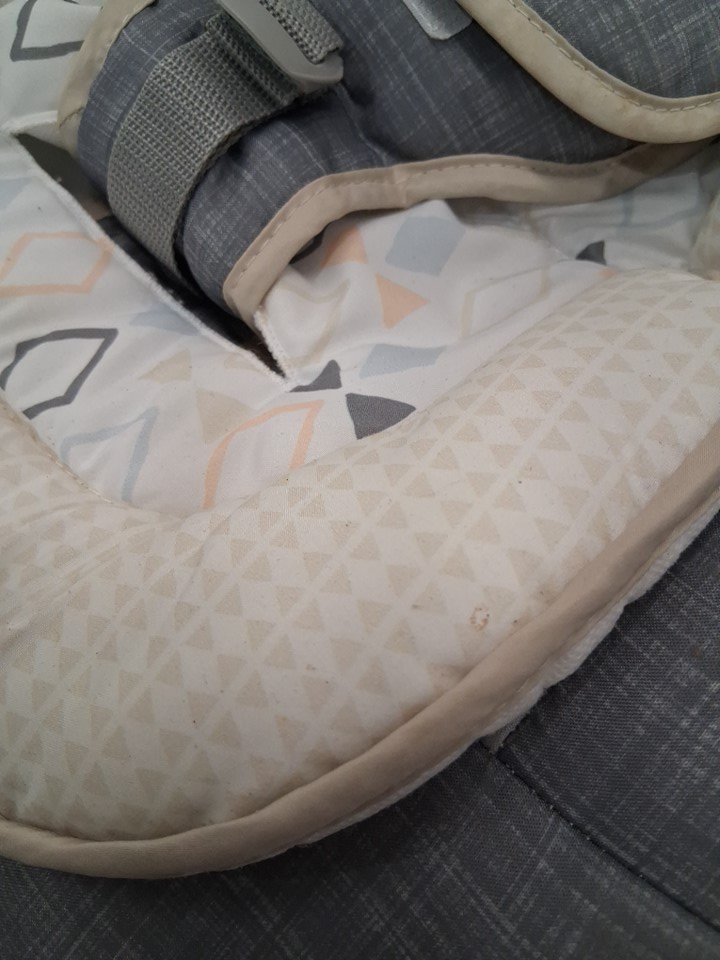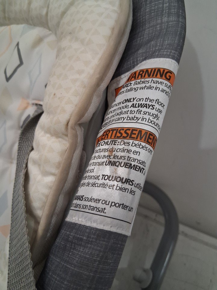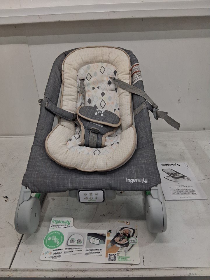 Missing hanging toy attachment & toy. Staining on seat from previous use, item was tested for power