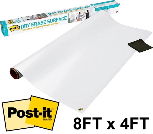 POST-IT DRY ERASE WHITEBOARD SURFACE - UNROLL, PEEL & STICK - 8FT x 4FT - white (MODEL: ee8x4)