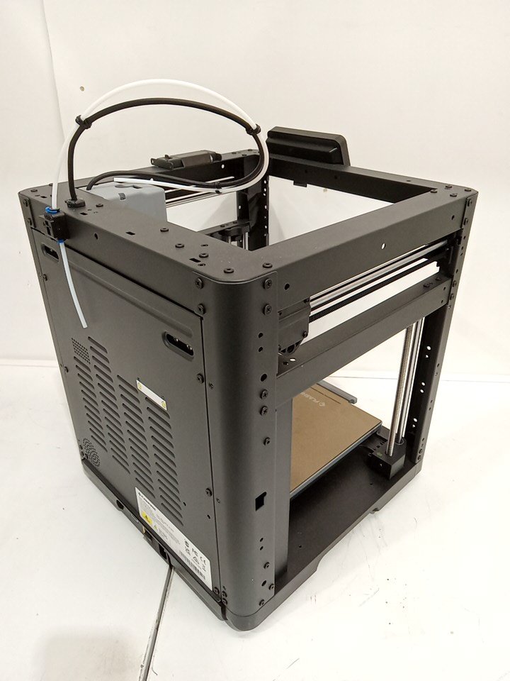 Item shows signs of being previously used prior to being returned. There is some filament on the hot end nozzle and stuck in the extruder. There is some minor scratches on the bed and some scuffs on the housing as a result from previous use. Item tested for power, nozzle and bed heat and axis movement. All the accessories that are supposed to be included are missing. See attached photos.