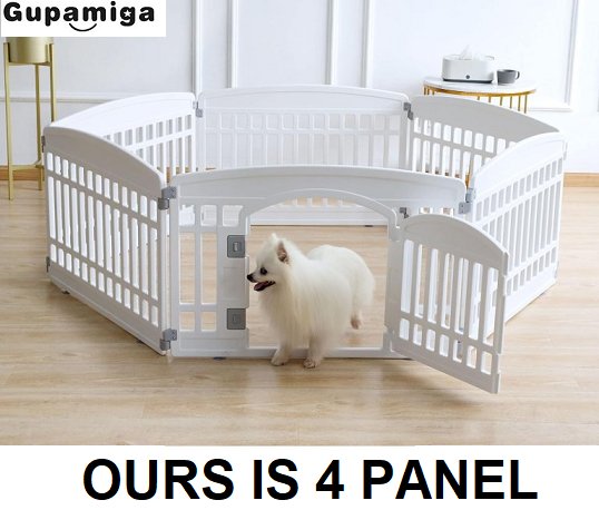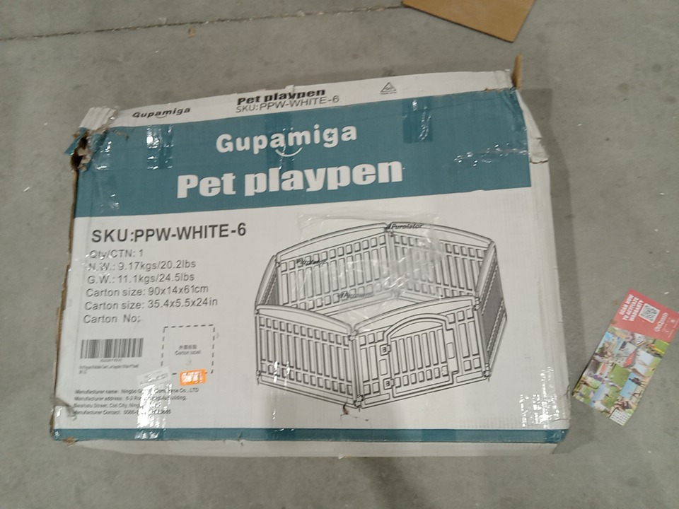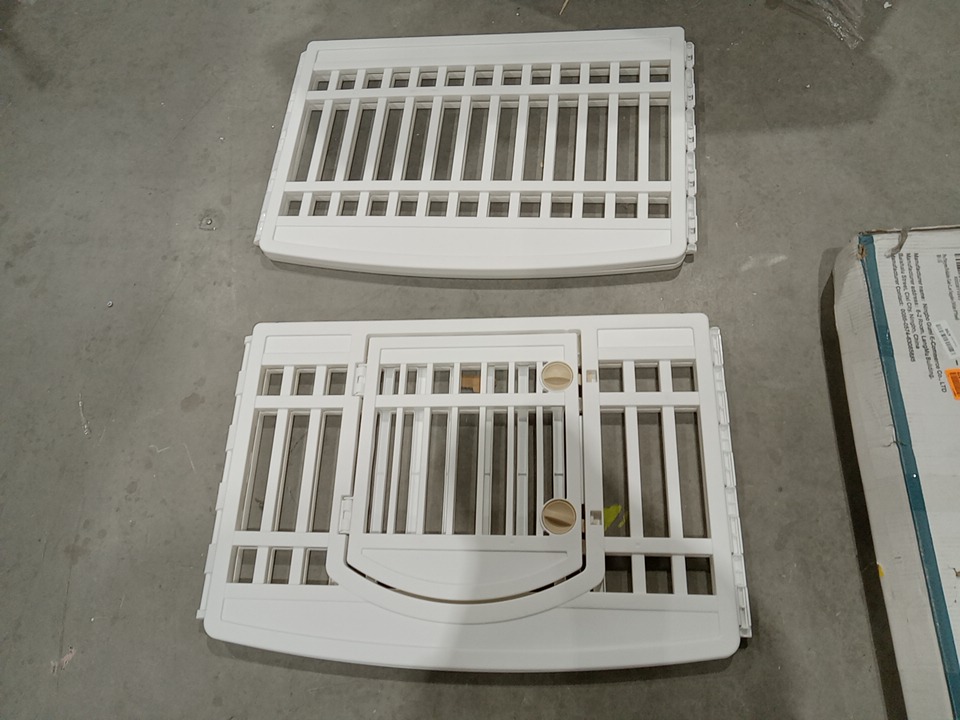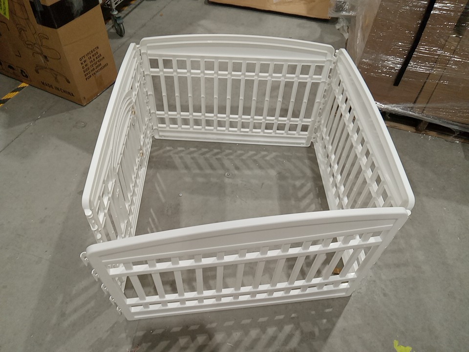 2 OF THE PANELS ARE MISSING, making this a 4 panel play pen, this will cause issue with its intended design however this item can still be used with the 4 panels present. see photos