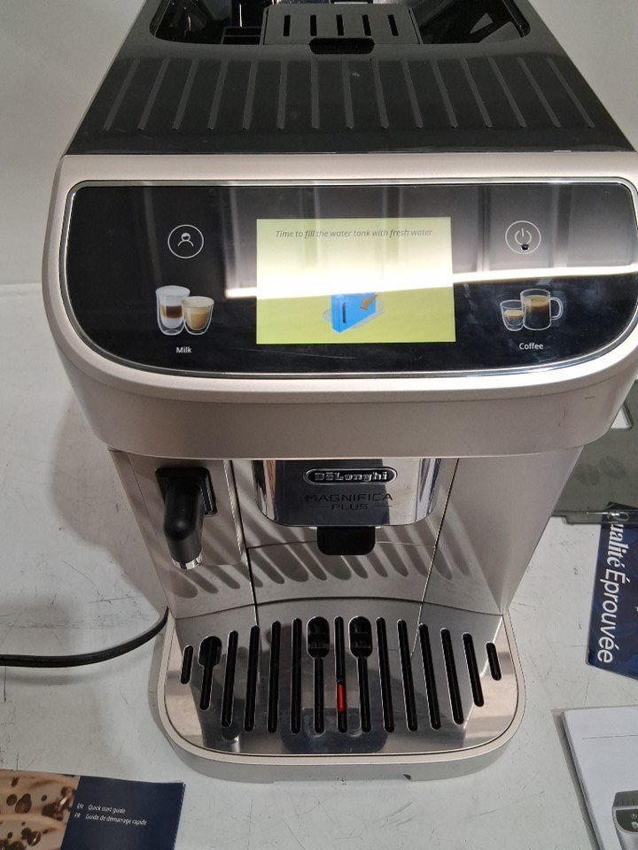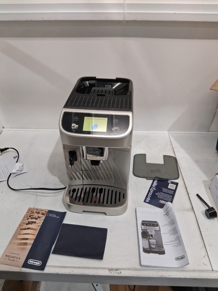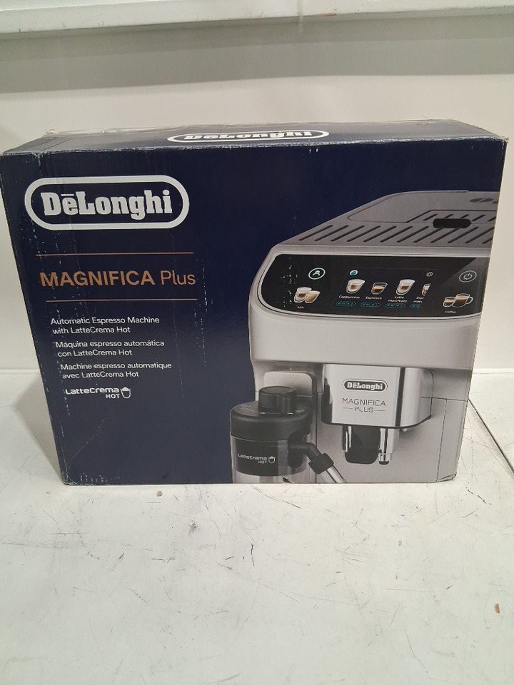 De’Longhi Magnifica Plus Automatic Espresso Machine with 18 One-Touch Drink Recipes, Automatic Milk Frothing System, 3.5″ Touchscreen Display, 60 oz Water Tank and 15-Bar Pump - Black/Silver (Model: ECAM32070SB)