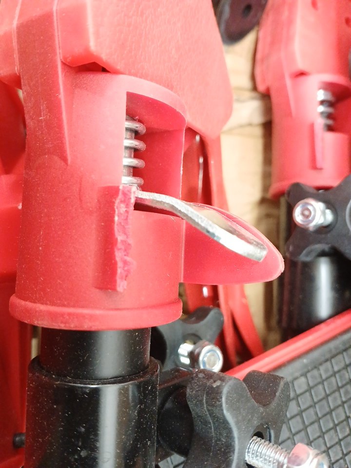 One of the jacks is missing its top piece (see last image for reference) and will need to be replaced in order to be used. This item has scratches and some of its plastic is snapped off