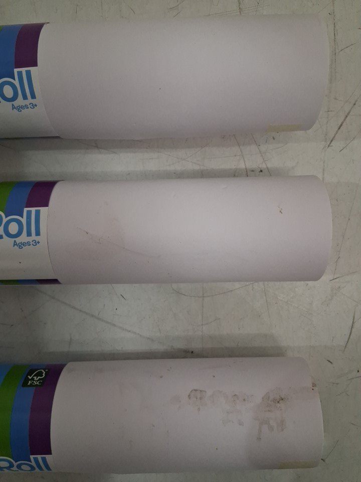 Paper rolls have dirt stains on top sheets likely caused during shipping. (See photos)