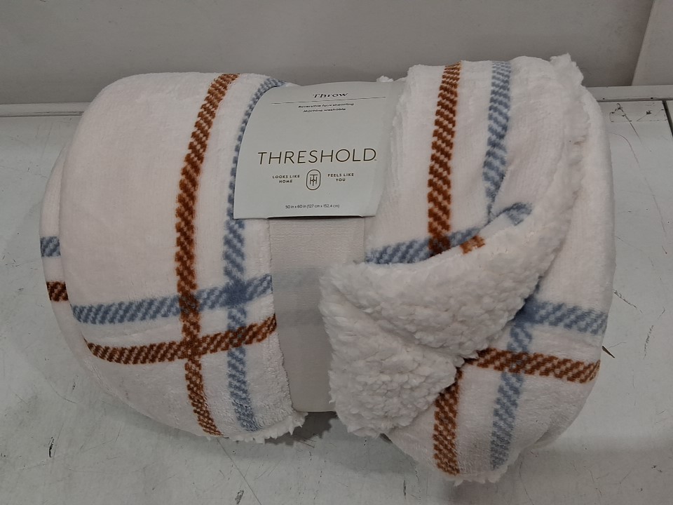 threshold grid printed plush throw blanket - 50" x 60" - ivory/orange/blue