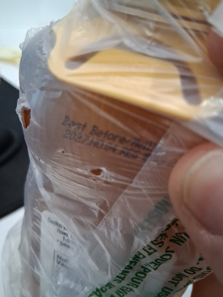 please note one of the containers appears to have been spilt. it still appears 70% full and the others are new. see photos.