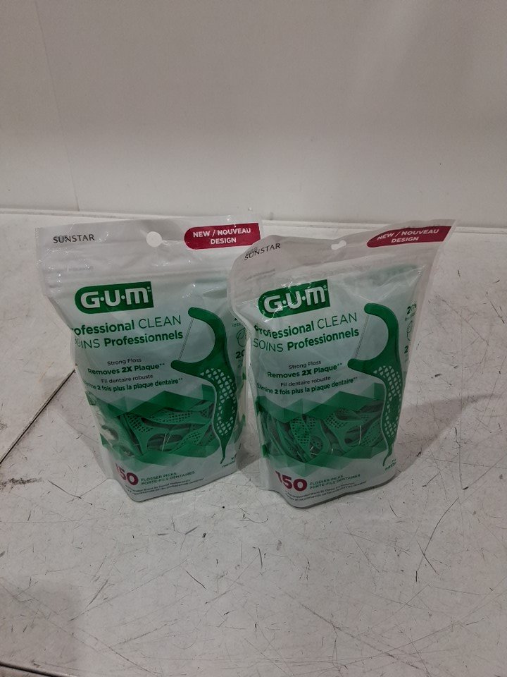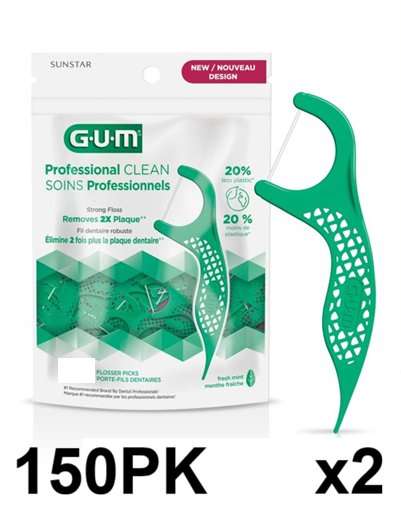 2 (150PK) G.U.M. PROFESSIONAL CLEAN STRONG FLOSSERS - FRESH MINT