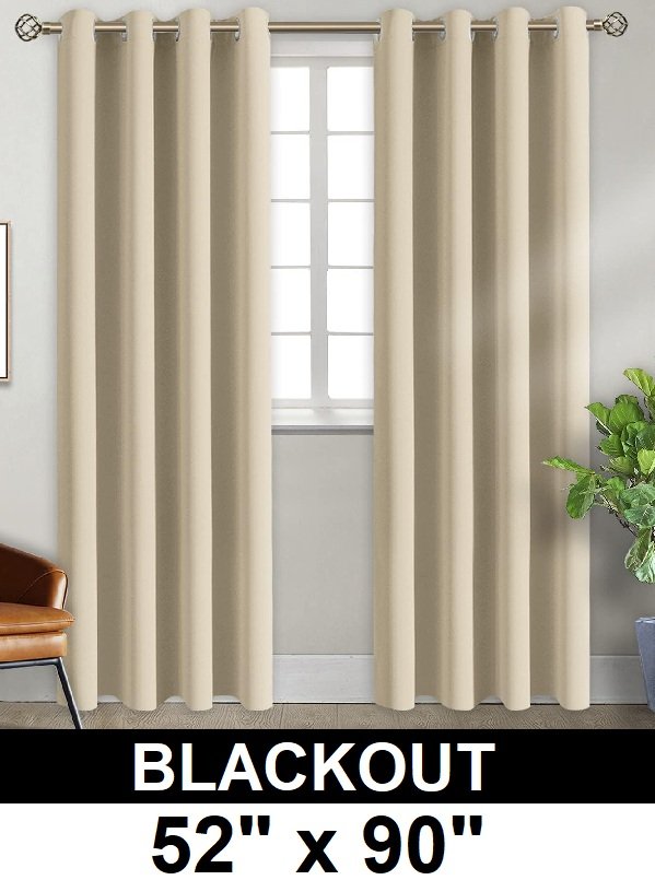 (2 PANELS) bgment grommet top blackout Thermal Insulated curtains - 52" x 90" - beige
