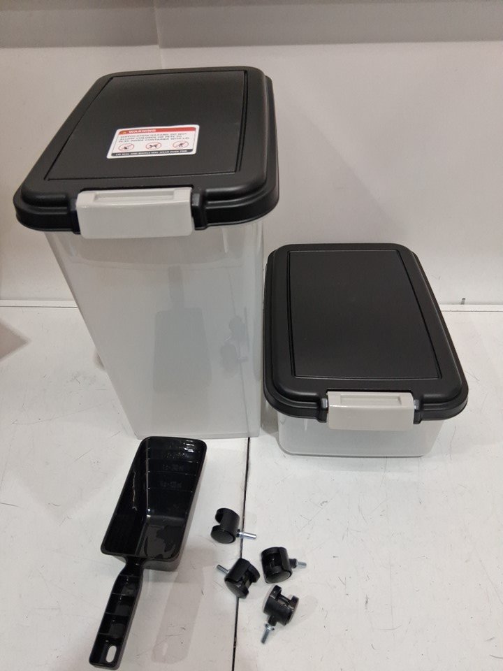 2PC IRIS AIRTIGHT PET FOOD STORAGE CONTAINER WITH SCOOP - 33QT & 12QT - BLACK/CLEAR (MODEL: MP-8/mp-1)