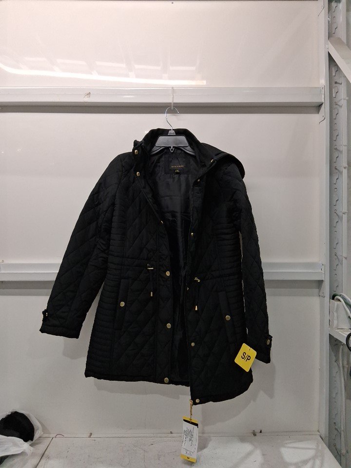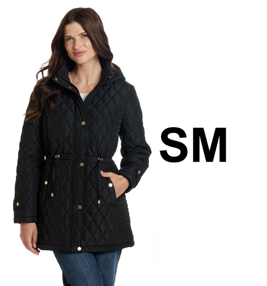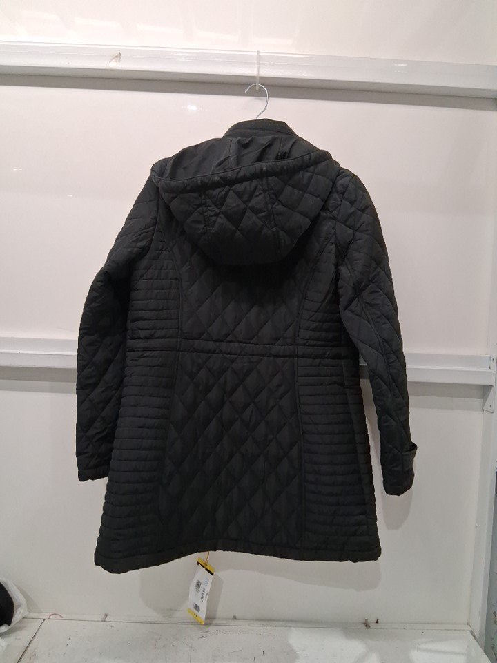 women's weatherproof Quilted hooded zip and button up lined Anorak Jacket - small - black
