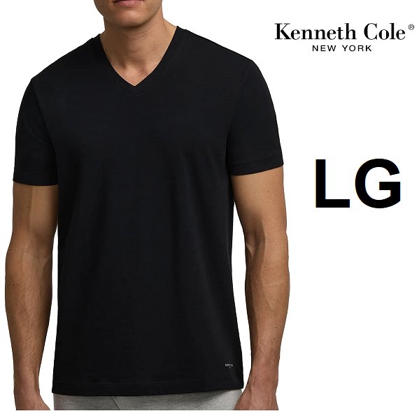 MENS KENNETH COLE V NECK SHORT SLEEVE SHIRT - LARGE - BLACK