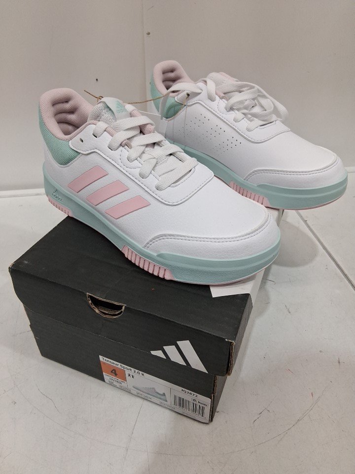 KID'S ADIDAS TENSAUR SPORT 2.0 SPORTSWEAR SHOE - SIZE 4 - WHITE, PINK, SEAFOAM - (MODEL: JQ2872 1927856)