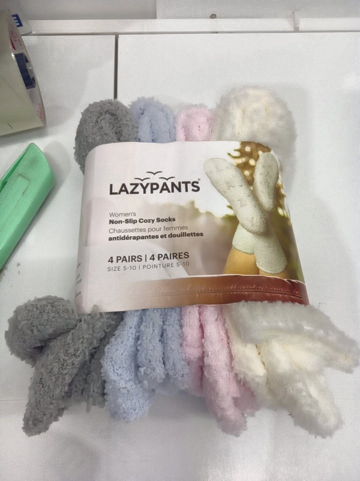 4Pr WOMENS lazypants non-slip cozy socks - size 5-10 - assorted colours (style: 1919417)
