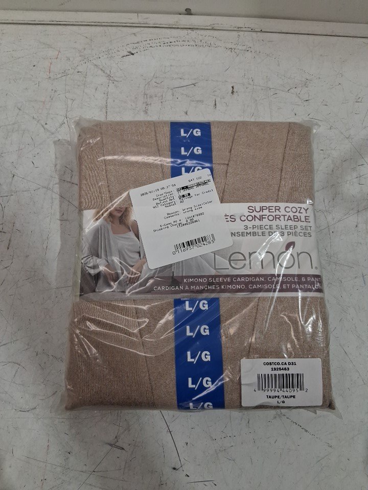 3pc women's lemon Cozy Brushed Sleep Set v Loose fit cami, Kimono cardigan, Loose fit pant - large - Heather Warm Taupe (model: 1925463)