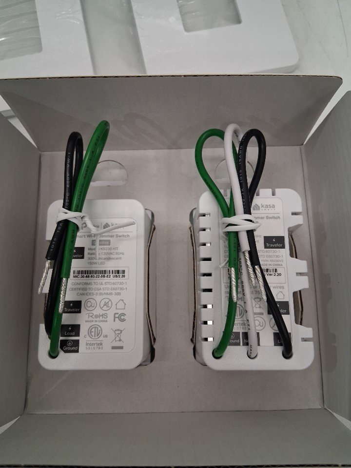 2pk Tp-link Kasa Smart Dimmable WiFi Light Switch 3-way Dimmer Kit - Google Home, Amazon Alexa & SmartThings Compatible - Neutral Wire Required, No Hub Required - White (Model: KS230KIT)