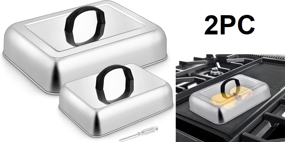 2pc HASTEEL stainless steel rectangle cheese melting dome - 13" - 9.3" - silver
