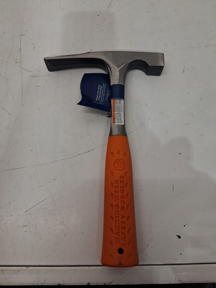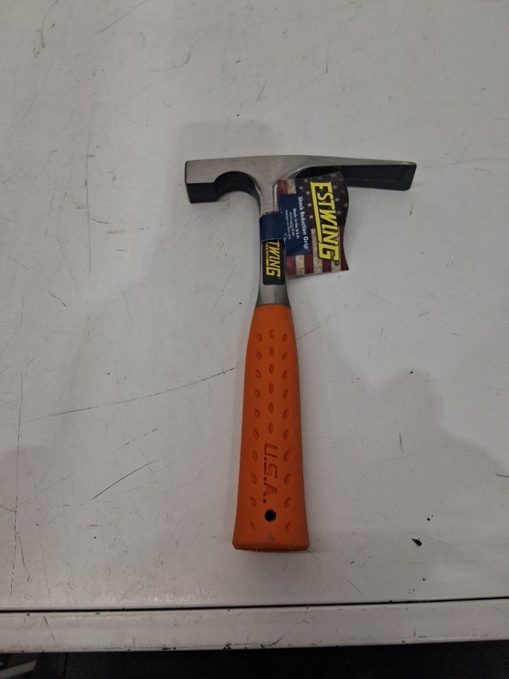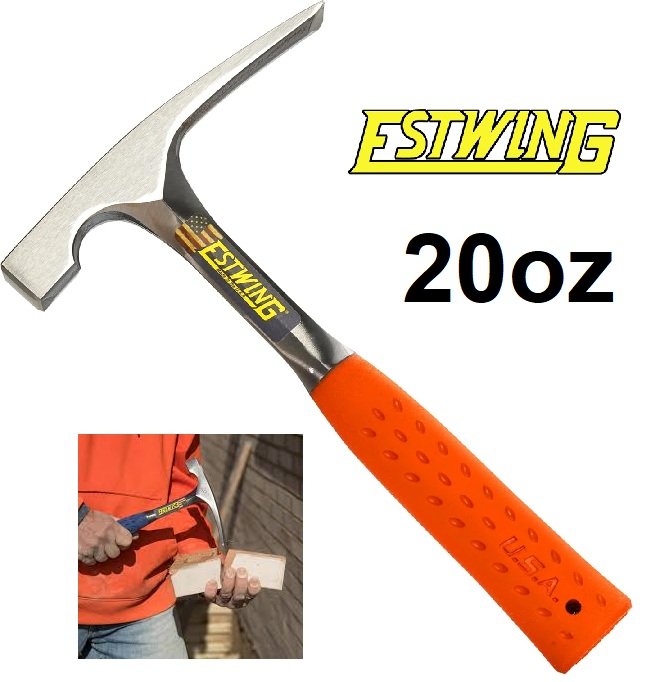 estwing Bricklayer's/Mason's Hammer Hi-Vis Masonry Tool with Forged Steel Construction & Shock Reduction Grip - 20oz - silver/orange (model: EO-20BL)