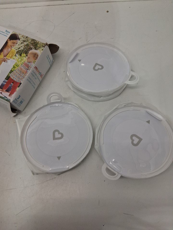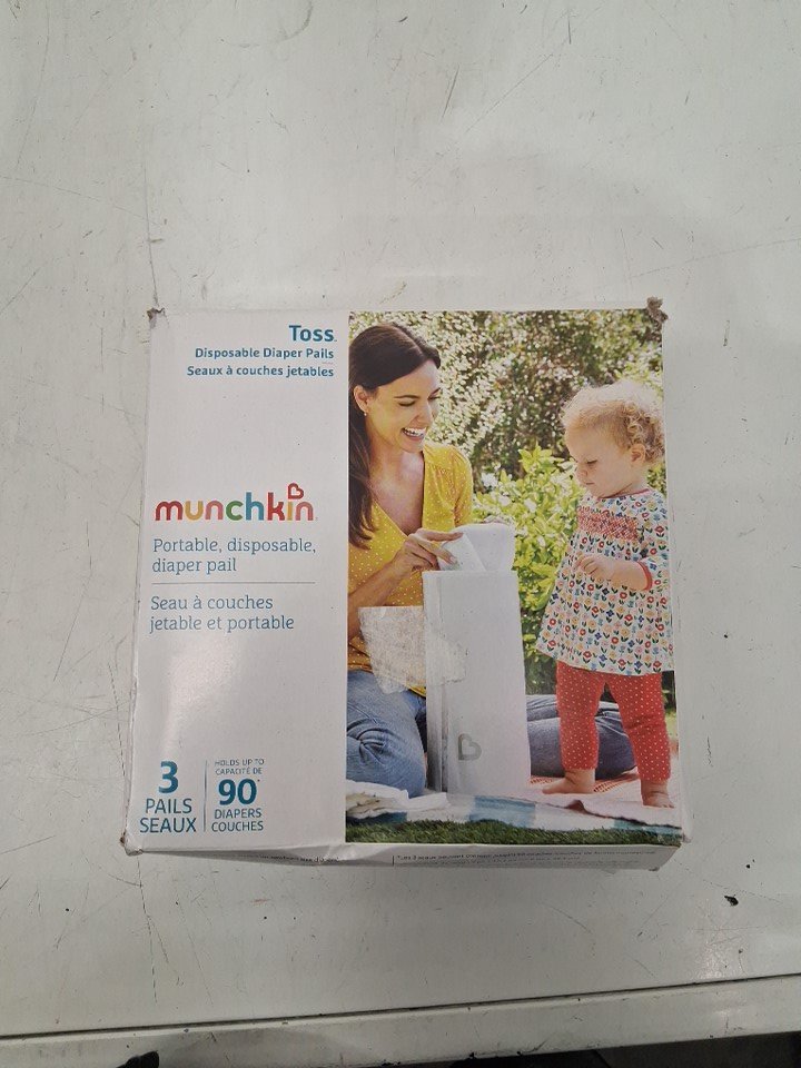 3PK munchkin portable, disposable diaper pail - hod up to 90 diapers - white/ grey