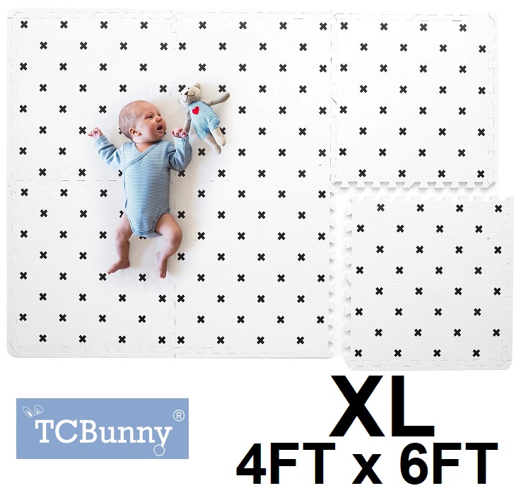 TCBunny Interlocking Foam Puzzle Baby Play Mat - Extra Large (4ft x 6ft) - White / black cross