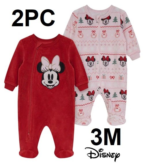 2pc Disney Velour Sleeper - 3 months - MINNIE christmas - RED/PINK