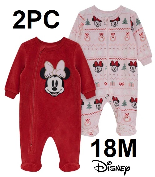 2pc Disney Velour Sleeper - 18 months - MINNIE christmas - RED/PINK