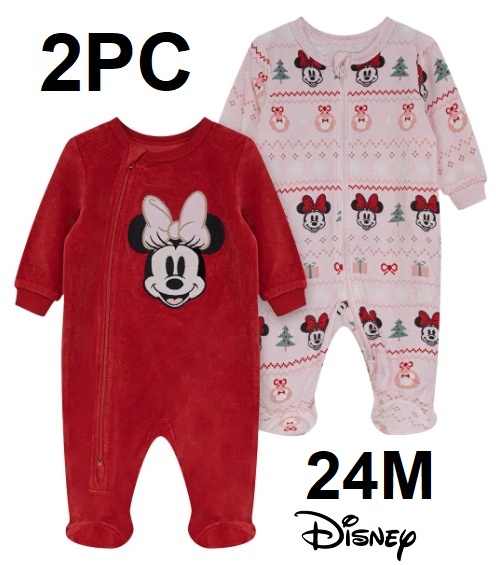 2pc Disney Velour Sleeper - 24 months - MINNIE christmas - RED/PINK
