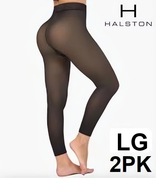 2PK WOMEN'S HALSTON SHEER ILLUSION TIGHTS, FOOTED - DOUBLE LAYER WITH FLEECE LINING - Large - Black (MODEL: 1925490)