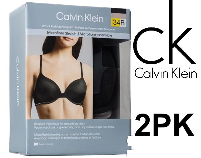 2pk Calvin Klein push up plunge microfiber stretch bra - 32B - black/nude (model: