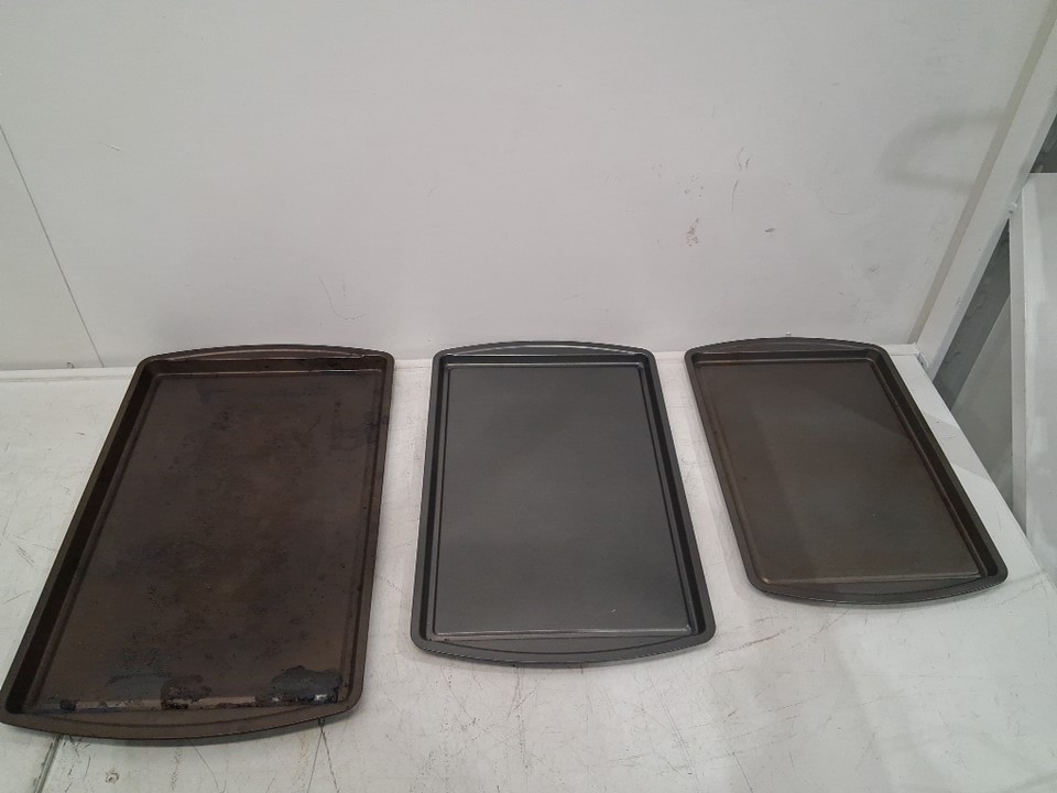 Burn/scratches on two pans from previous use, see photos