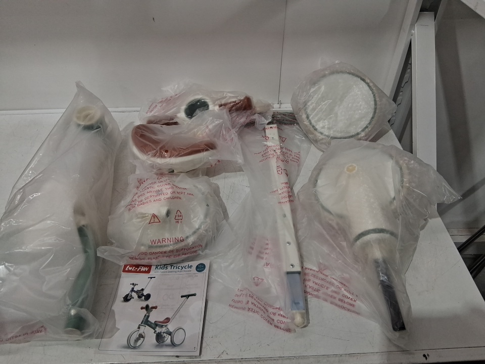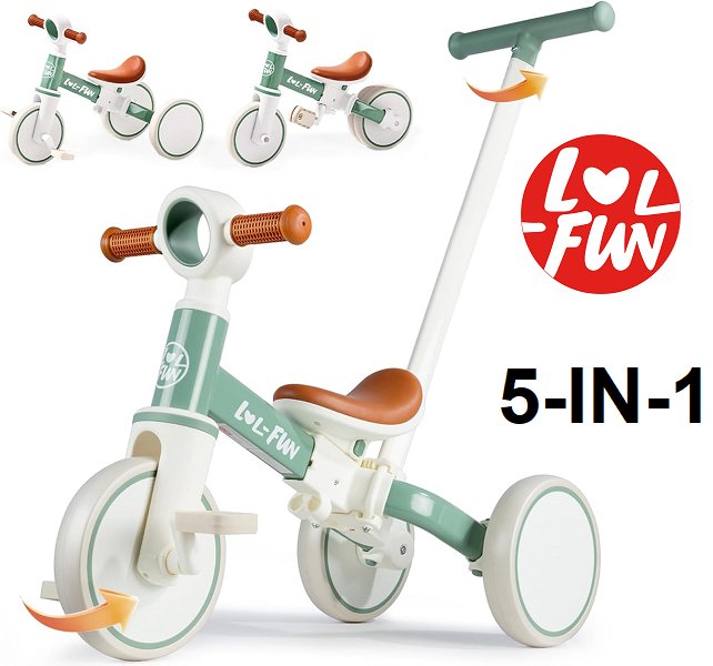 lol-fun kids toddler 5-in-1 tricycle with push handle for girls & boys - green/white (model: L00113)