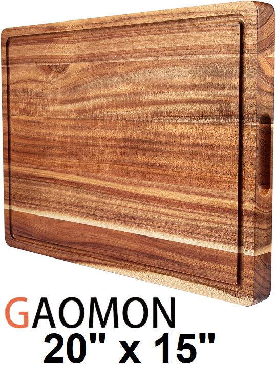 GAOMON Large Acacia Wood Cutting Board Thick, Reversible Wooden Cutting Board for Kitchen, Charcuterie Board Cheese Board with Deep Groove, Chopping Board for Meat, Vegetables, Fruit - 20" x 15" - brown - (model: pho_0rwu2hp8 )