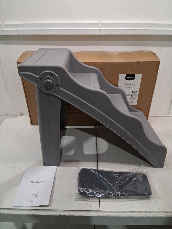 amazon basics folding pet stairs - 14.6" x 22.75" x 19.5" - grey