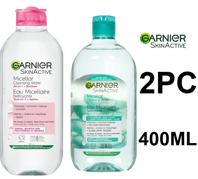 2PC GARNIER SKINACTIVE MICELLAR WATERS - ALL IN 1 + SOOTHES & ALL IN 1- 400ML EACH