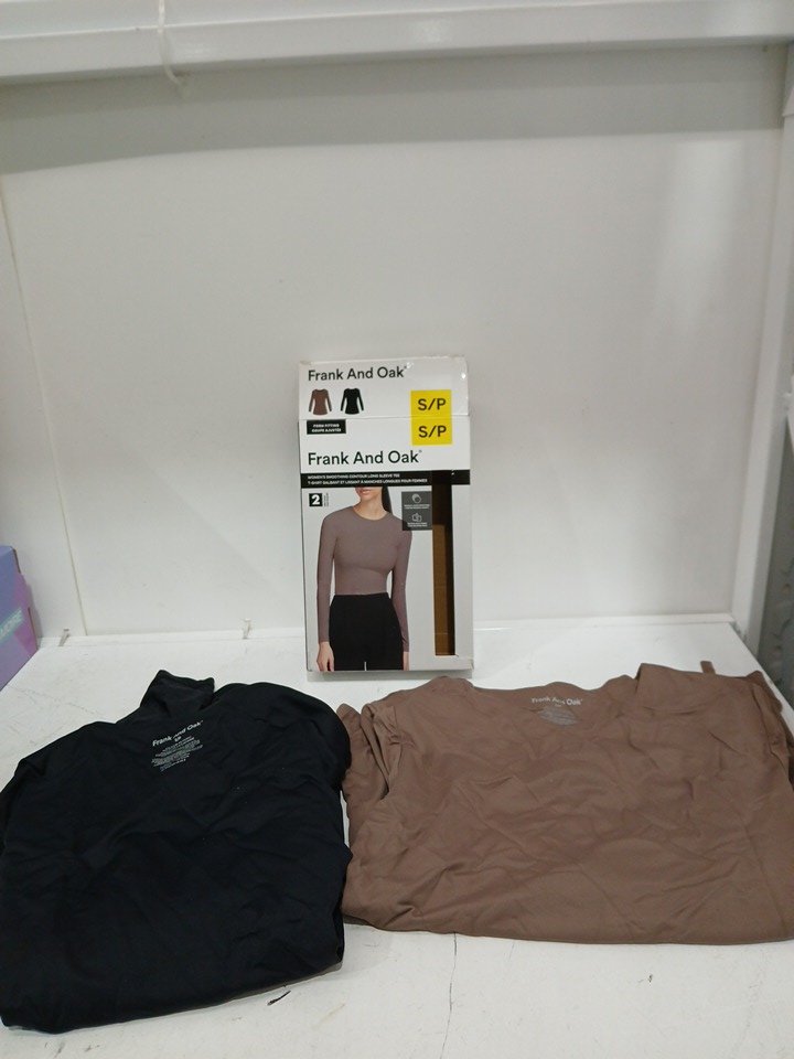 2PK WOMEN'S FRANK AND OAK CONTOUR LONG SLEEVE SHIRT - SMALL - TAUPE BROWN / BLACK (STYLE:2928451 )