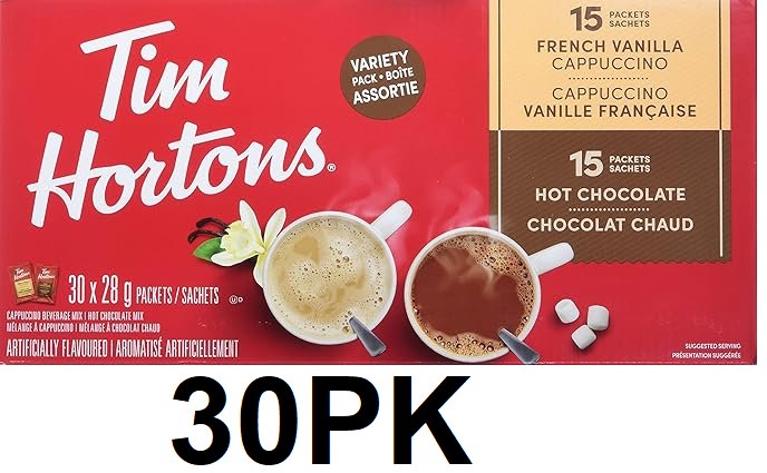 30PK TIM HORTONS variety pack - 15 hot chocolate, 15 French vanilla