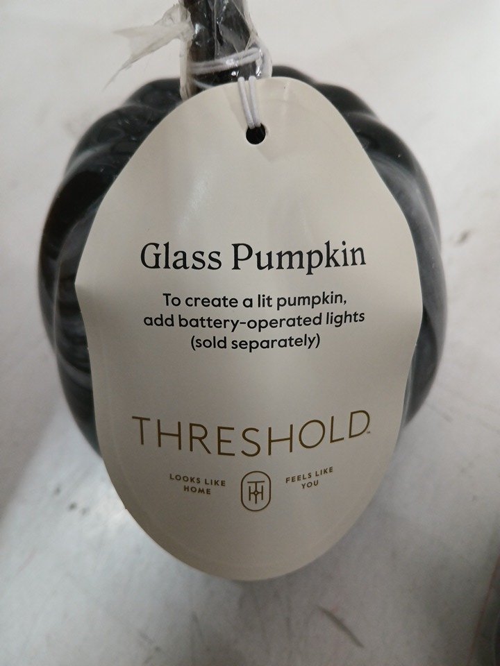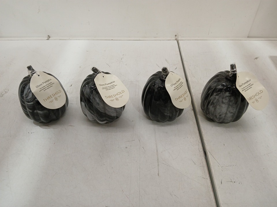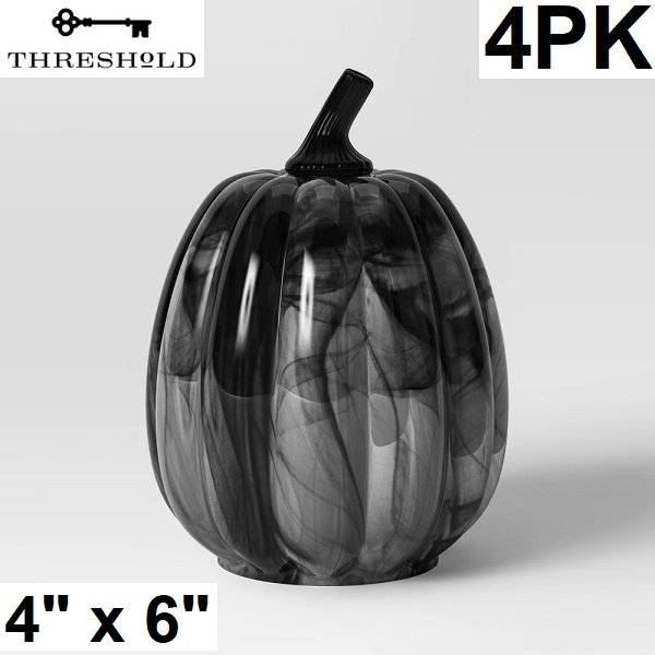 4pk threshold smoky glass pumpkins - compatible with led candles - 4" x 6" - black/grey