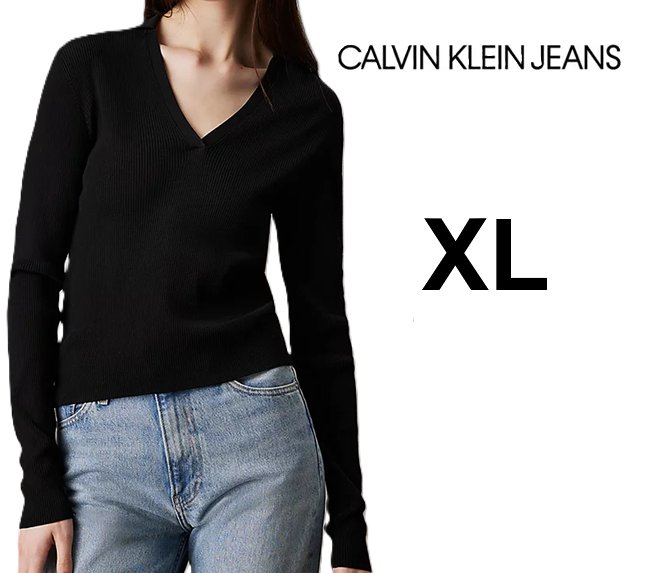 women's Calvin Klein Jeans Knitted V-Neck Sweater - extra large - black (style: 1839793)