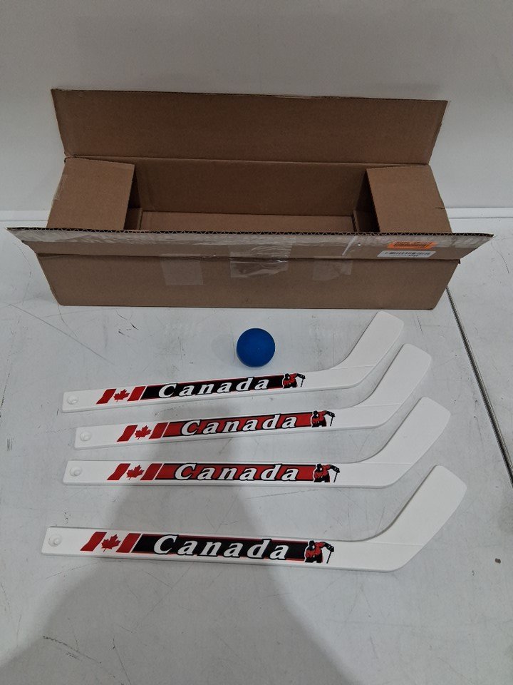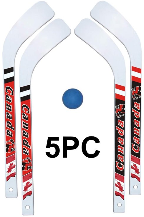 CANADA RED MINI-HOCKEY STICK SET with 5 STICKS AND A BALL - WHITE/BLACK/red