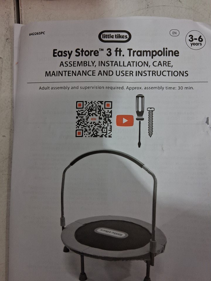 LITTLE TIKES Play Big EASY-STORE KIDS TRAMPOLINE - 3FT - MAX WEIGHT 55LBS - BLUE/MULTICOLOUR (MODEL: 642265PC)