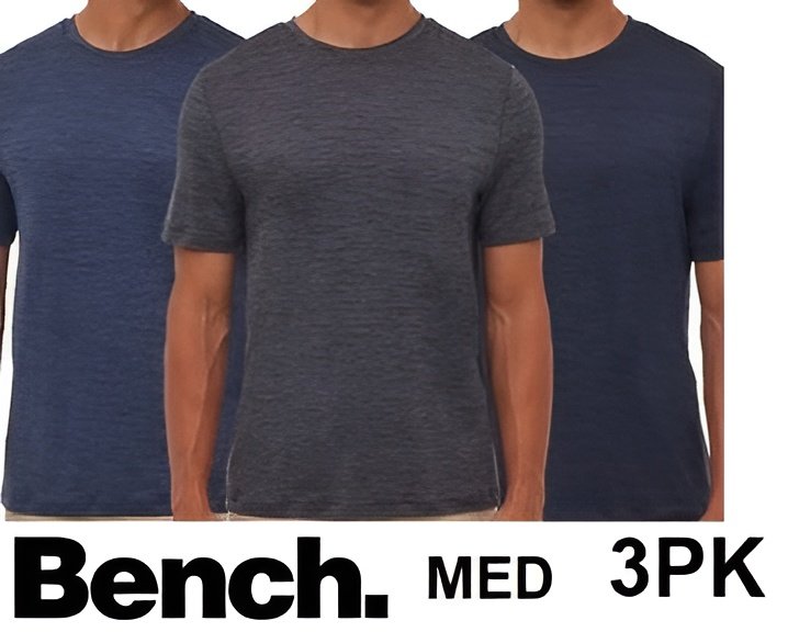 3PK MENS BENCH. active moisture wicking breathable t-shirts - medium - heather navy/navy (STYLE: 1947661)