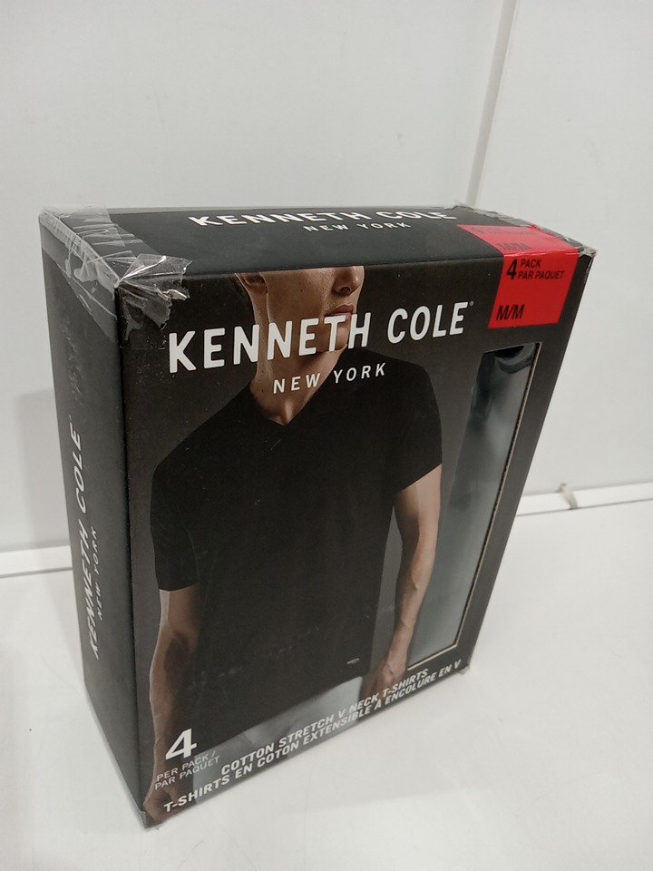 4pk Kenneth cole cotton stretch v neck t shirts - medium - Black
