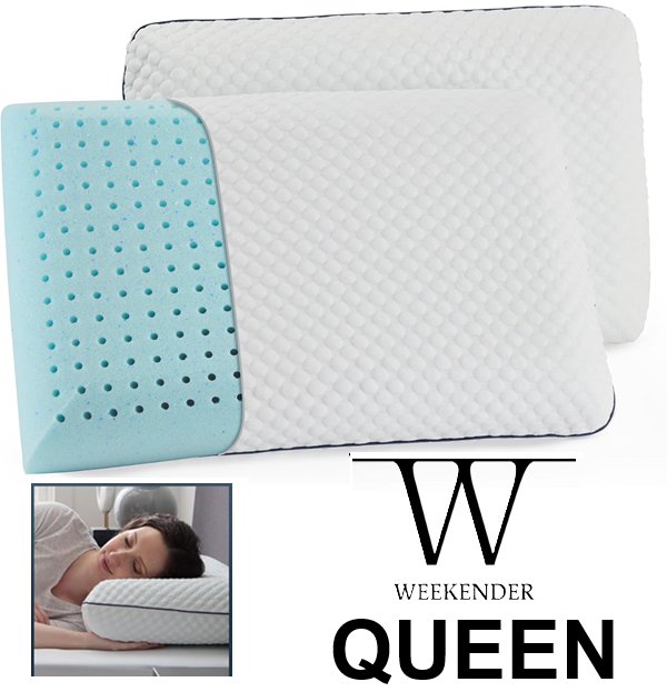 2pk weekender ventilated gel memory foam pillow with washable cover - 29" x 16" x 5"- Queen - white (model: wkss30gf)