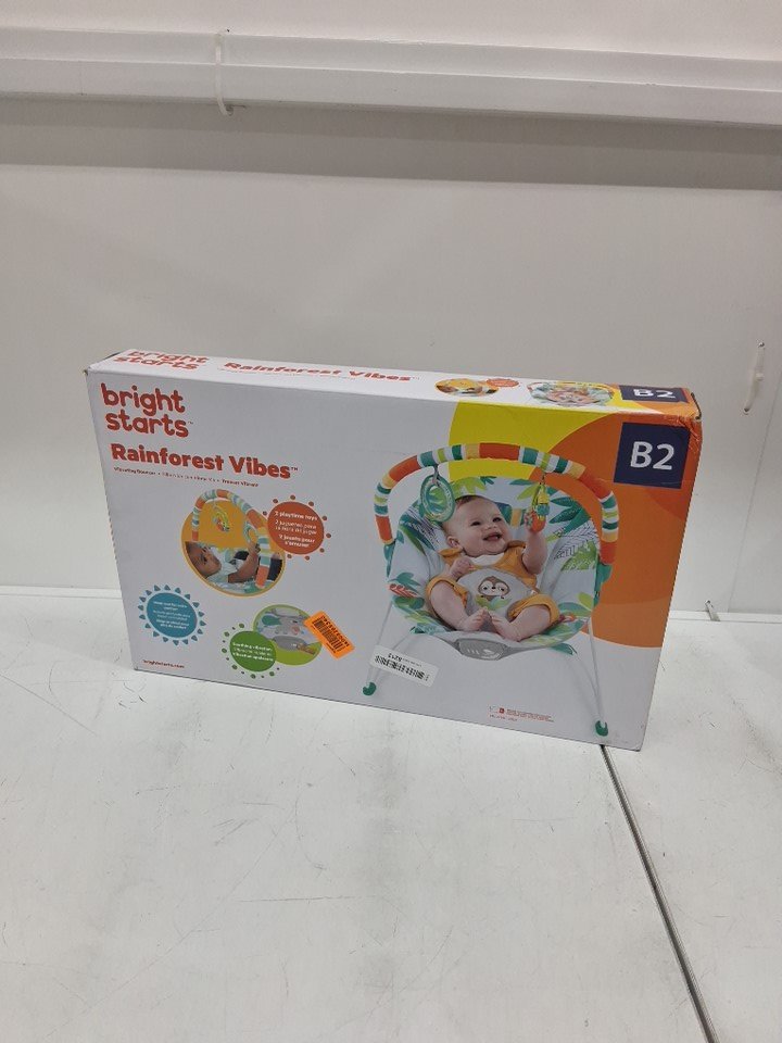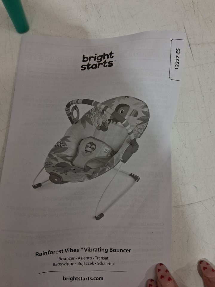 BRIGHT STARS 3 point harness VIBRATING BOUNCER WITH TOY BAR - RAINFOREST VIBES (MODEL:12227)