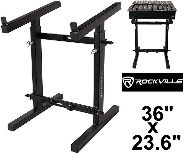 Rockville Portable Mixer Stand - Folds Flat, Adjustable 13.8” - 23.6” WIDTH, 24” - 36” HEIGHT - BLACK (MODEL: RXS20)