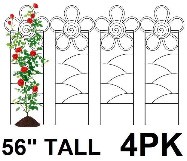 4pk Arifaro metal garden trellis for outdoor/indoor climbing plants - 56" - floral