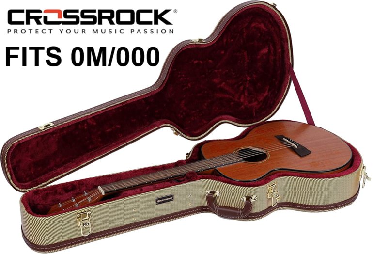 Crossrock Hard-Shell Wood Case-Stainless Steel Latches Sponge Lining for OM/000 Acoustic Guitars - Vinyl Tweed (Model: CRW620OMTW)
