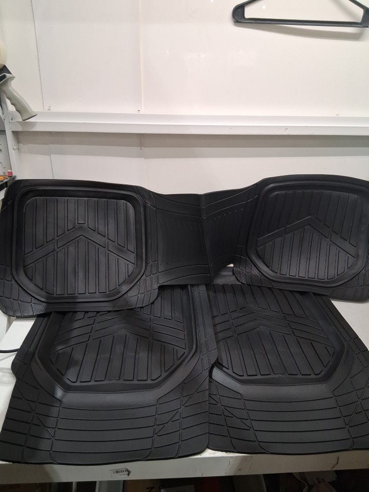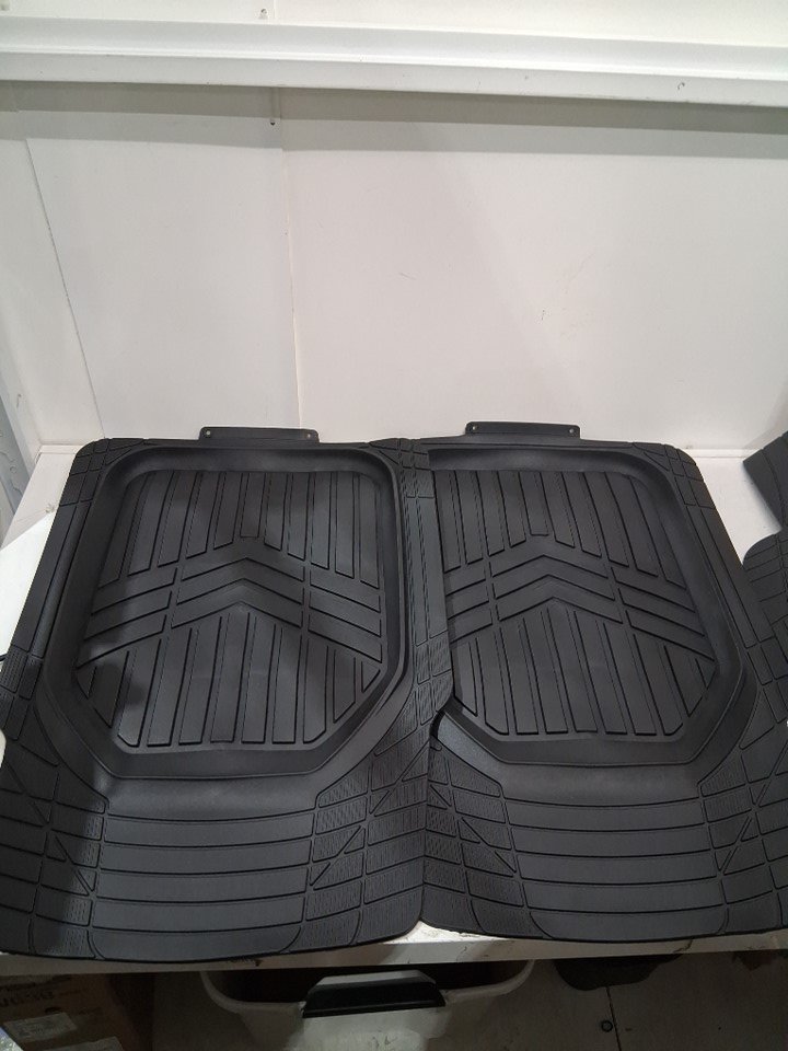 3pc amazon basics all season heavy duty universal full set rubber floor mats for cars, suvs and trucks - black