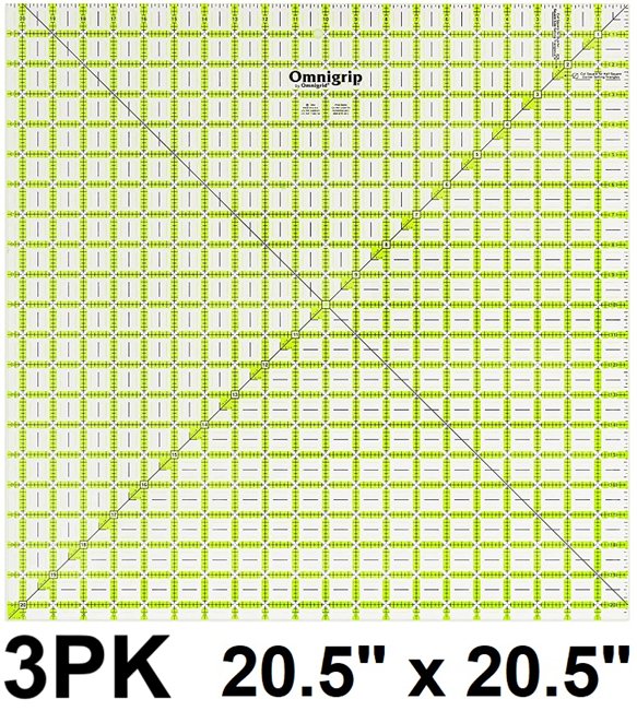 3PK DRITZ OMNIGRIP NON-SLIP DIAMOND FREE QUILTER'S RULER - 20.5" x 20.5" - GREEN (Model: RN205)