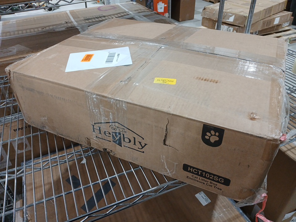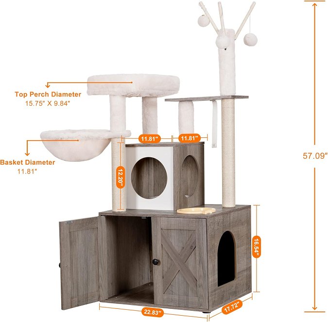 heybly all in one wooden litter box with modern cat tower tree - 57.09" x 22.83" x 17.72" - grey (model: hct102)