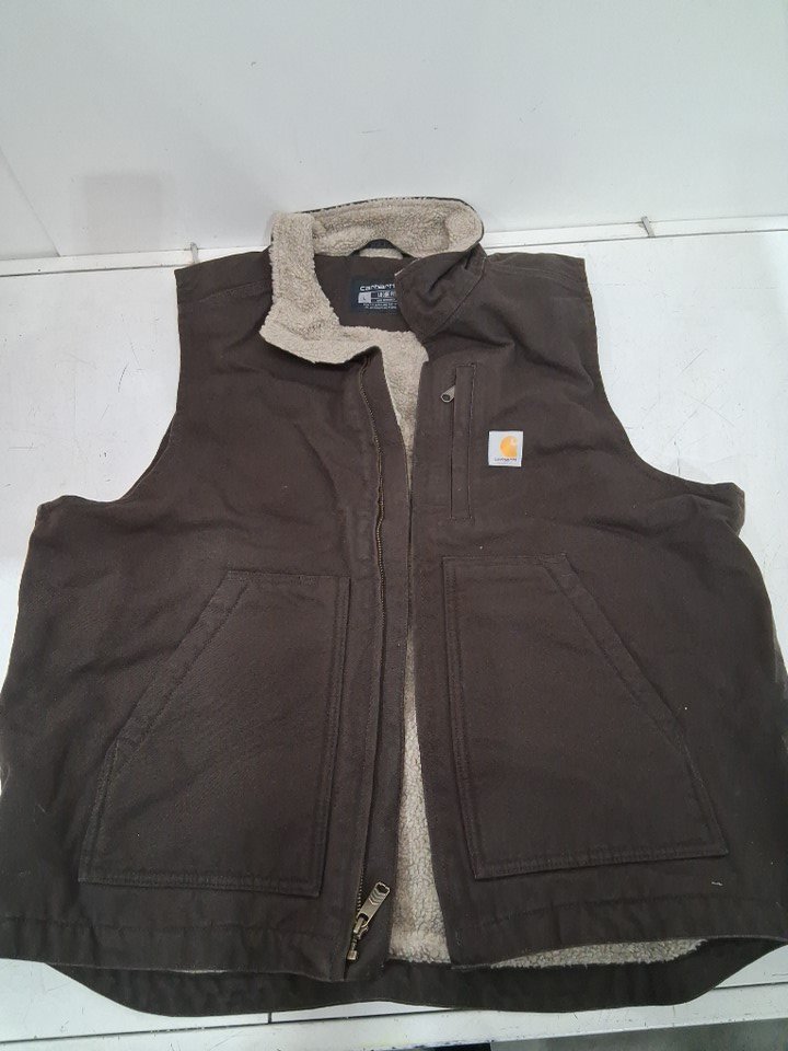 some debris on vest hair and discoloration on certain areas indicating previously being worn. .