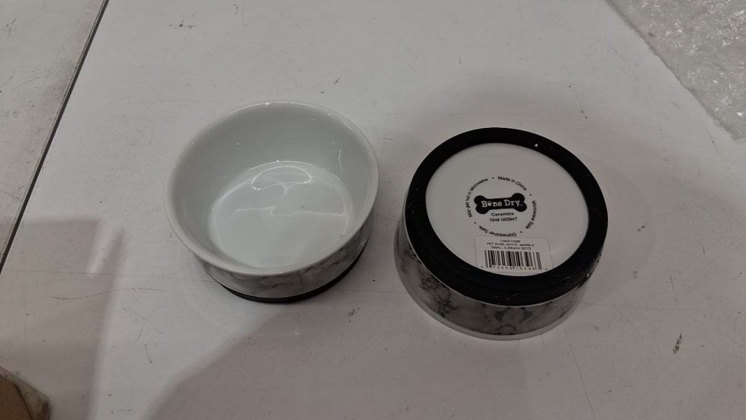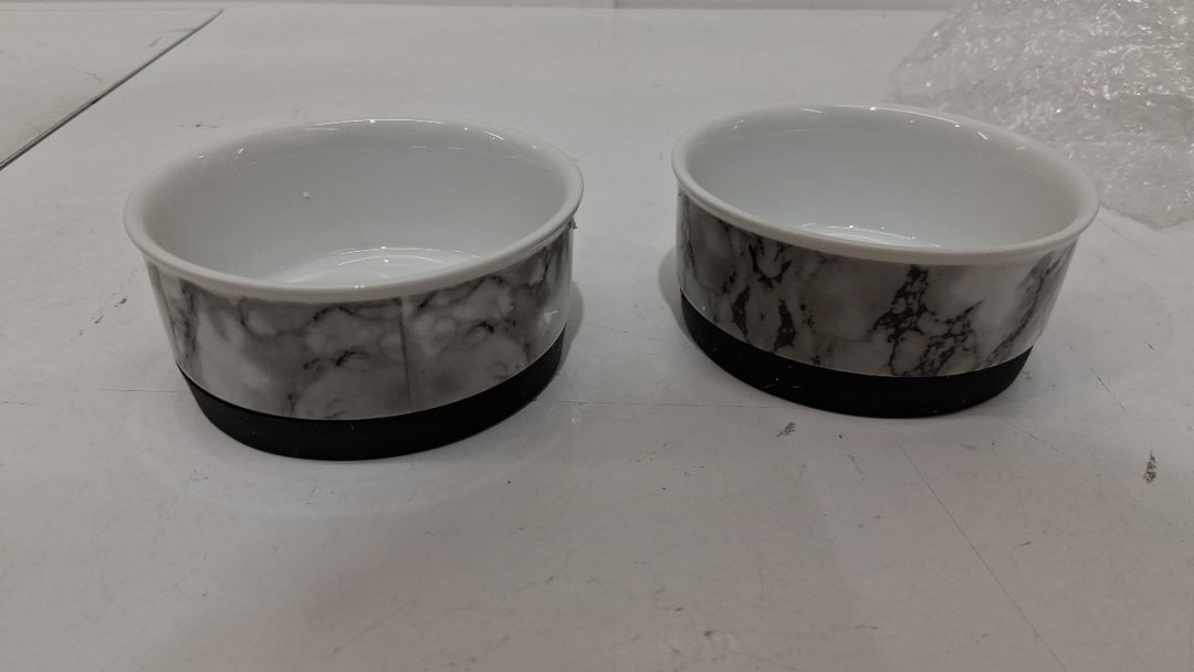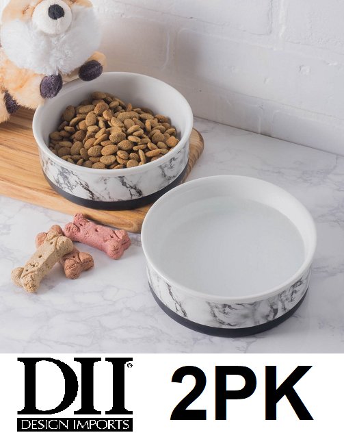 2PK DII BONE DRY ELEGANT CERAMIC PET FOOD WATER BOWLS WITH NON-SLIP BOTTOM - 4.25" x 2" - WHITE/BLACK MARBLE (MODEL: CAMZ10396)